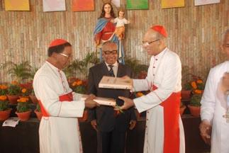 The publication of the three volumes of the St. Thomas Christian Encyclopedia of India is a worthy model for the world Churches and an incomparable achievement and contribution of the Church in India, stated Oswald Cardinal Gracias in Guwahati, dedicating the work to the nation. The publication of the third and final volume is something of which the Encyclopedia team can be justly proud, but they should not rest on their oars but must continue their much needed work of service to the Church in India today, His Eminence went on to say. Telespore P. Cardinal Toppo dedicated the volumes to the world Christian community. The two Cardinals officially released the Encyclopedia by exchanging copies of the work, in the presence of Archbishops and Bishops from all over India and members of the CBCI Commissions. Archbishop Andrews Thazhath, Prof. George Menachery the Editor of the Encyclopedia, and Dr. George Plathottam the secretary of the CBCI Commission for Media also spoke on the occasion.